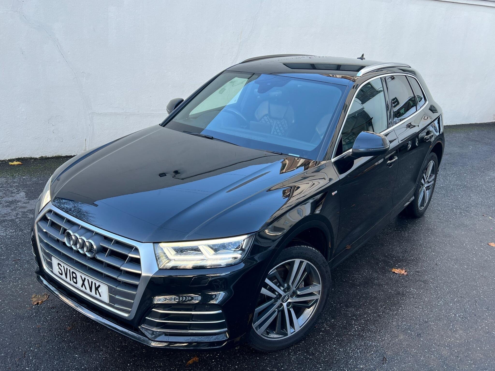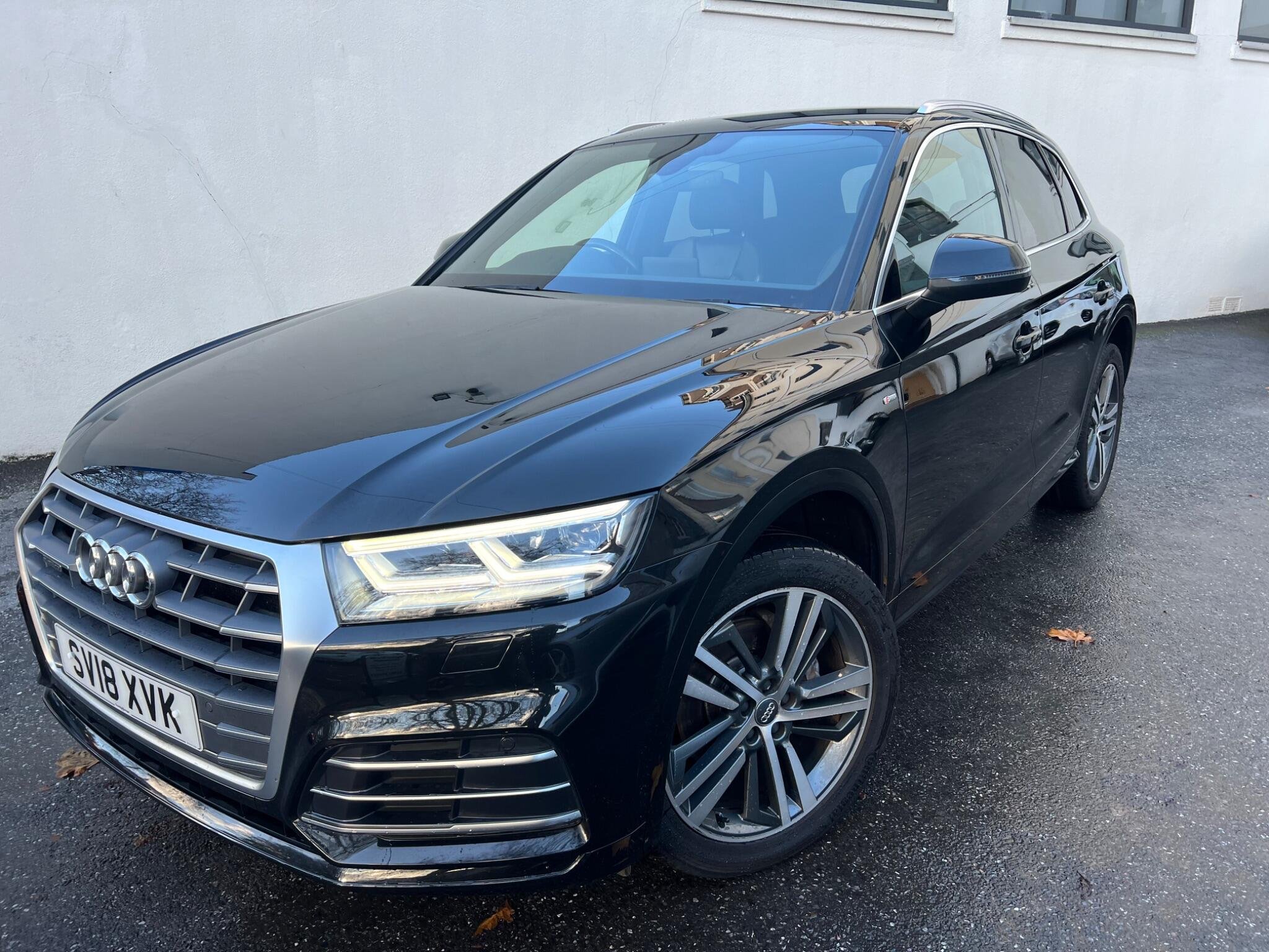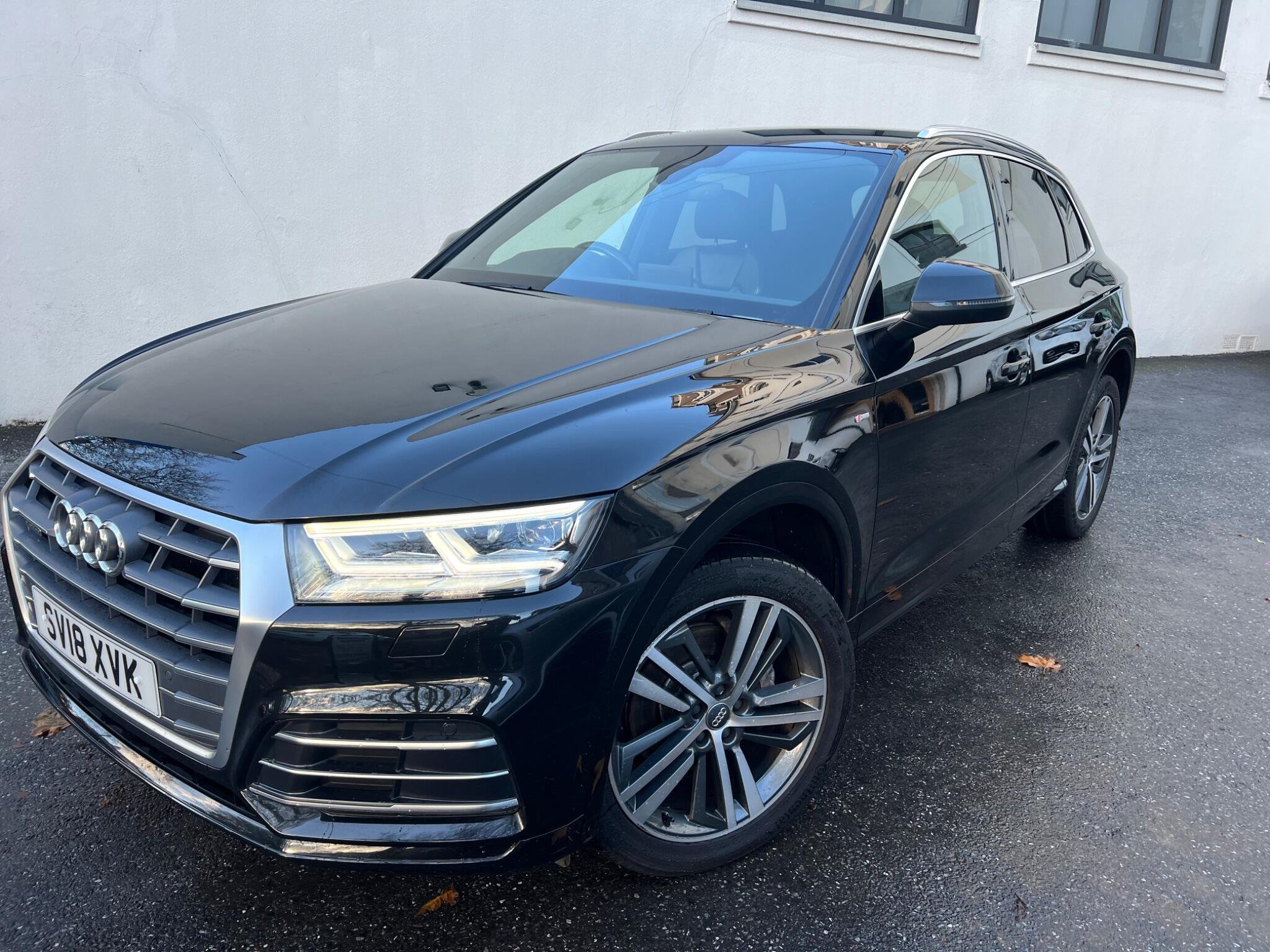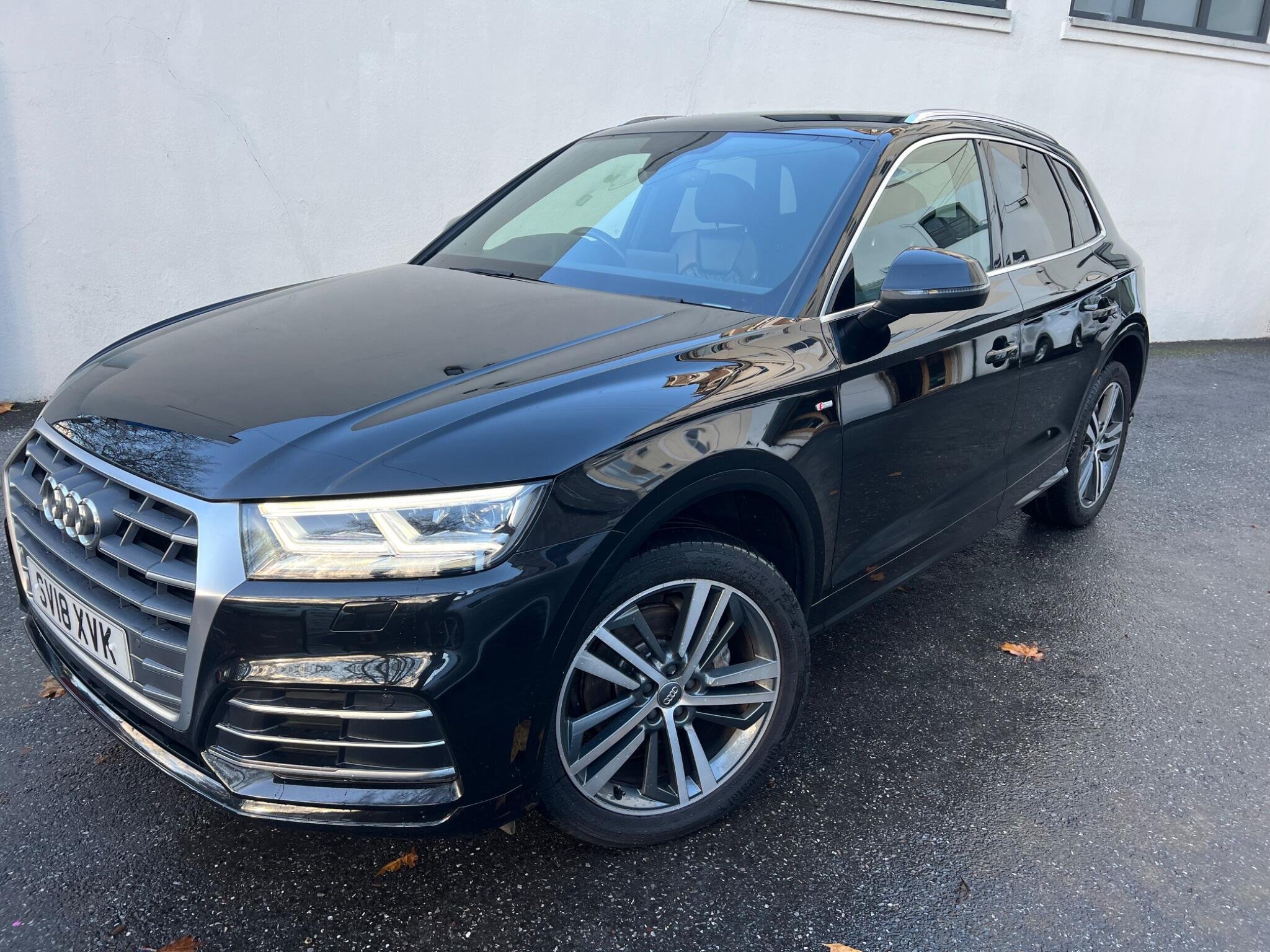 This 2018 Audi Q5 TDI S line boasts exceptionally low mileage for its age, having covered just 62,000 miles. This premium SUV features a powerful yet efficient 2.0 litre Euro 6 diesel engine paired with Audi's renowned four wheel drive system, ensuring confident handling in all conditions. The S line trim level enhances its sporty appeal, and you'll appreciate the comfort of heated front seats, 20" Diamond Finshed S Line Alloys, Full black leather S Leather Interior With White Stitching, Heated Seats, the convenience of a light and rain sensor that automatically activates the headlights, and the sophisticated LED headlights with their distinctive Q signature design, complemented by LED rear lights and dynamic rear indicators. Stay connected on the go with the integrated Bluetooth interface and enjoy a perfectly regulated cabin temperature thanks to the deluxe 3 zone climate control.
