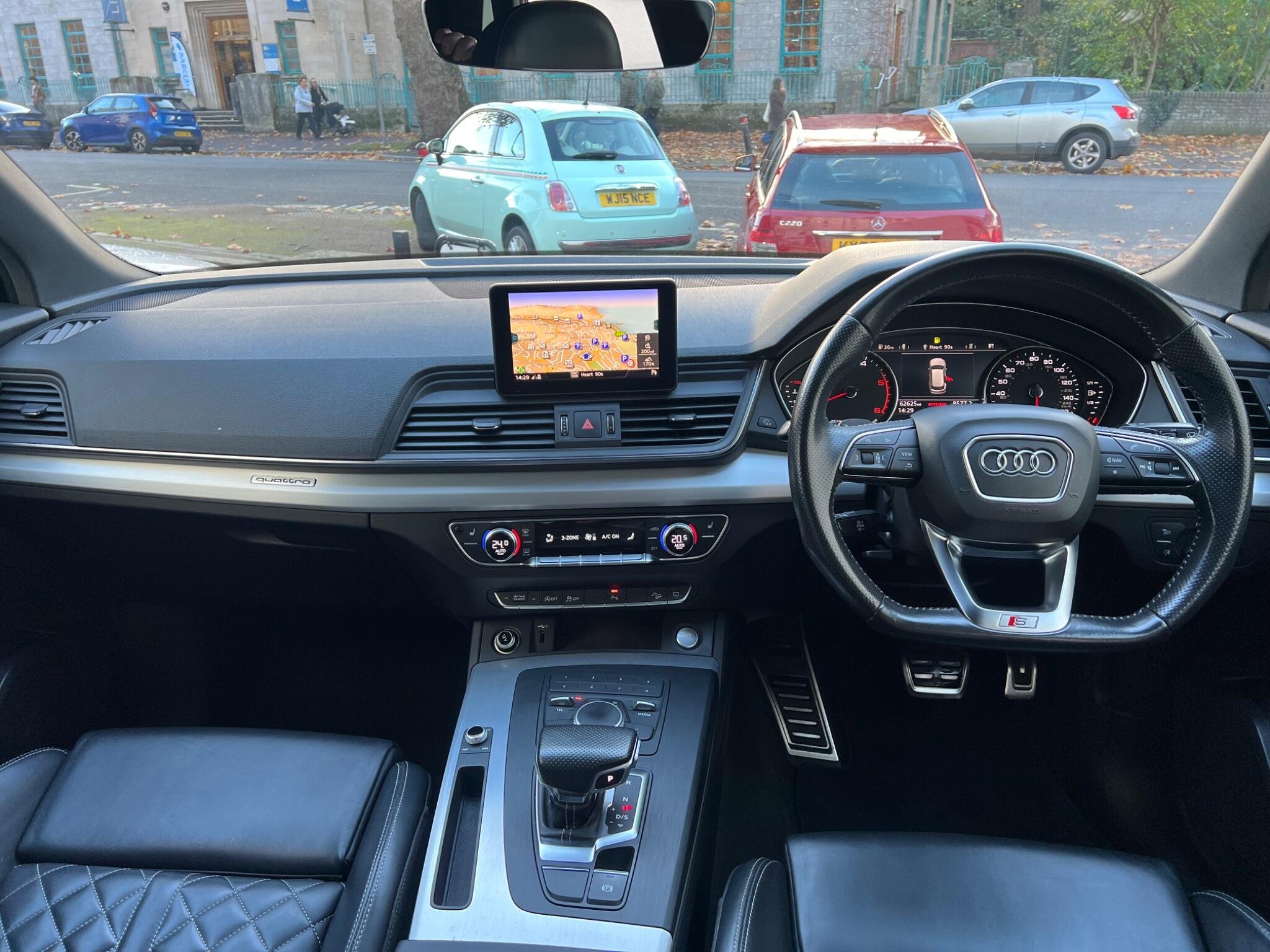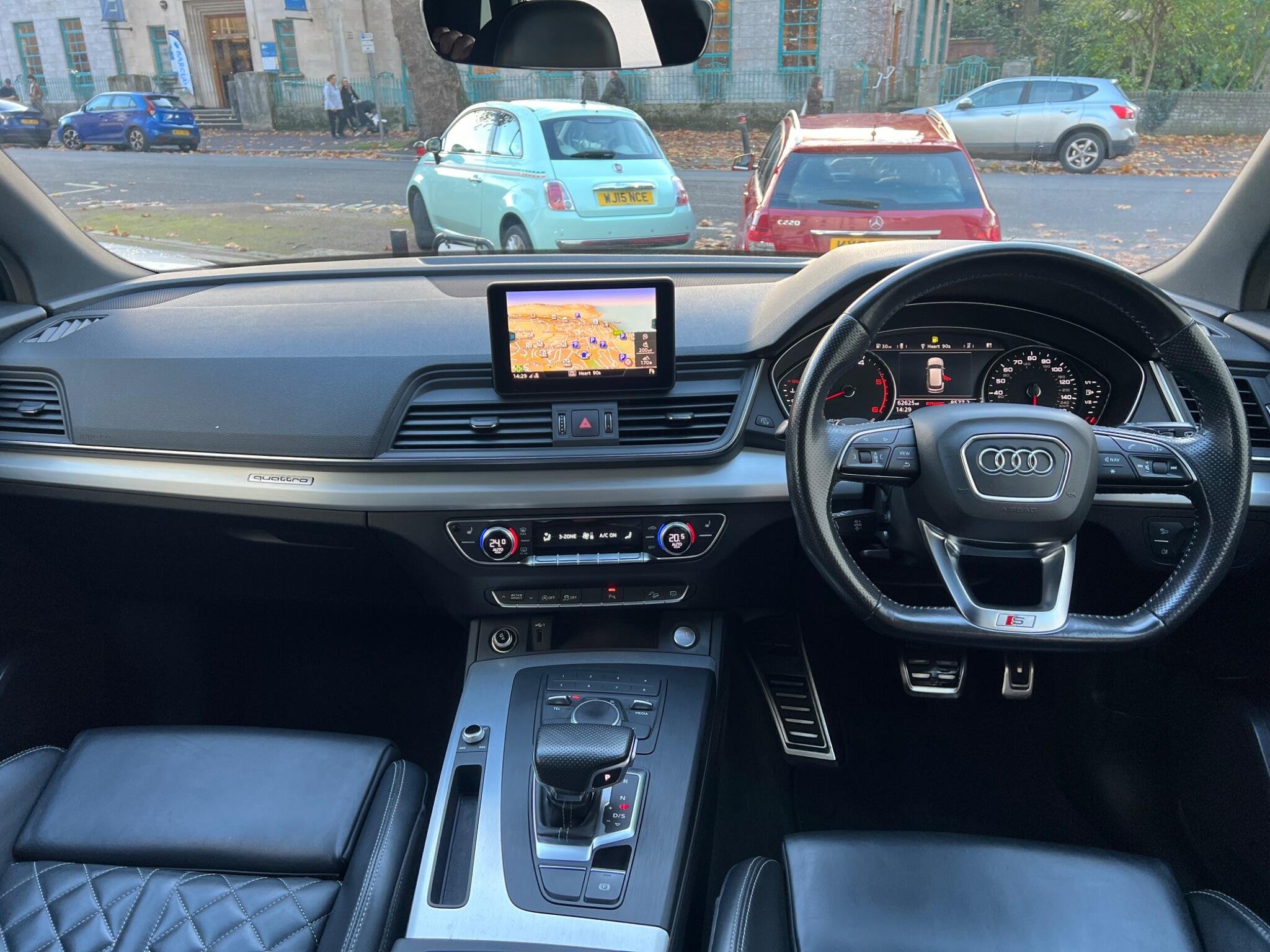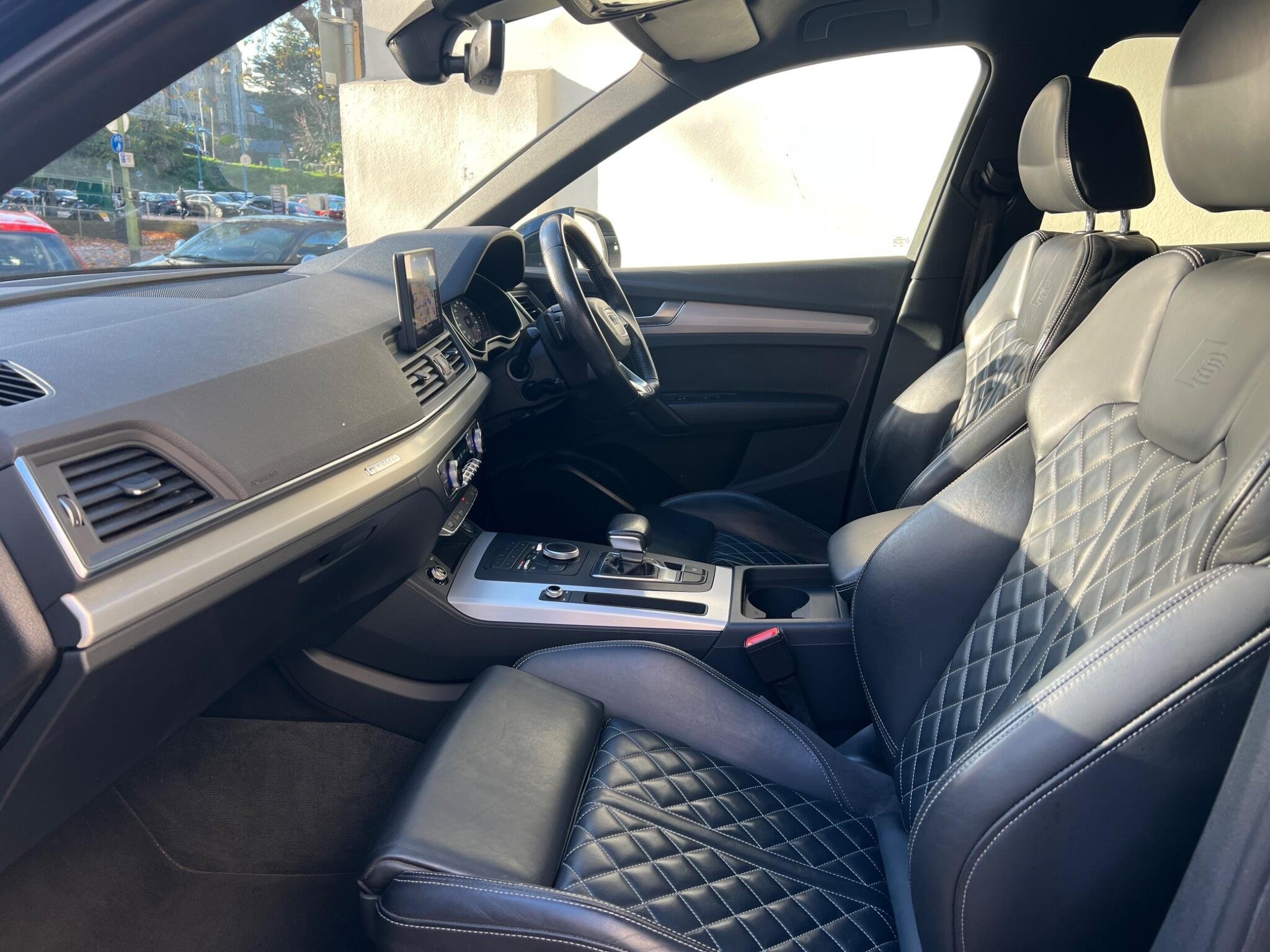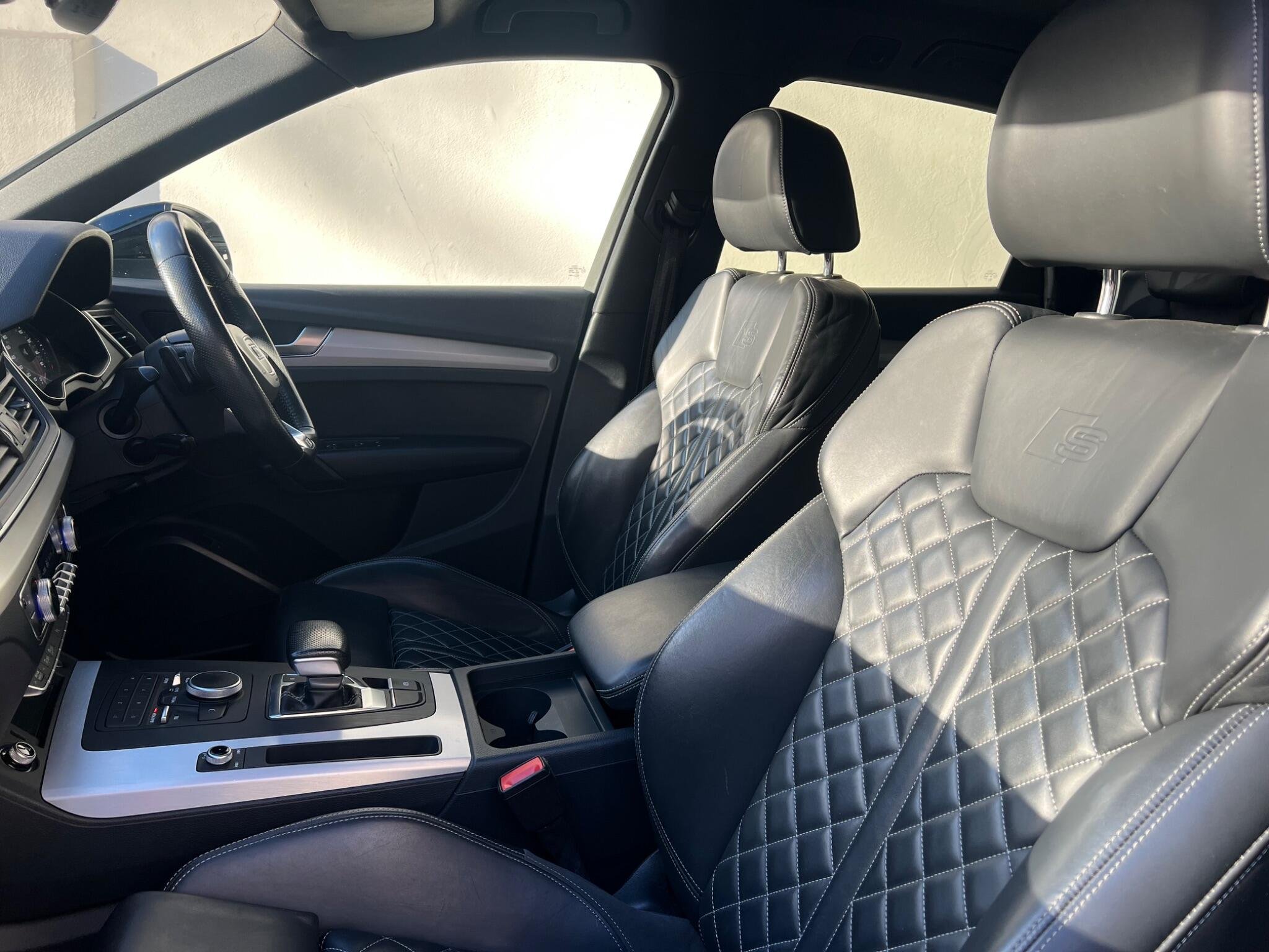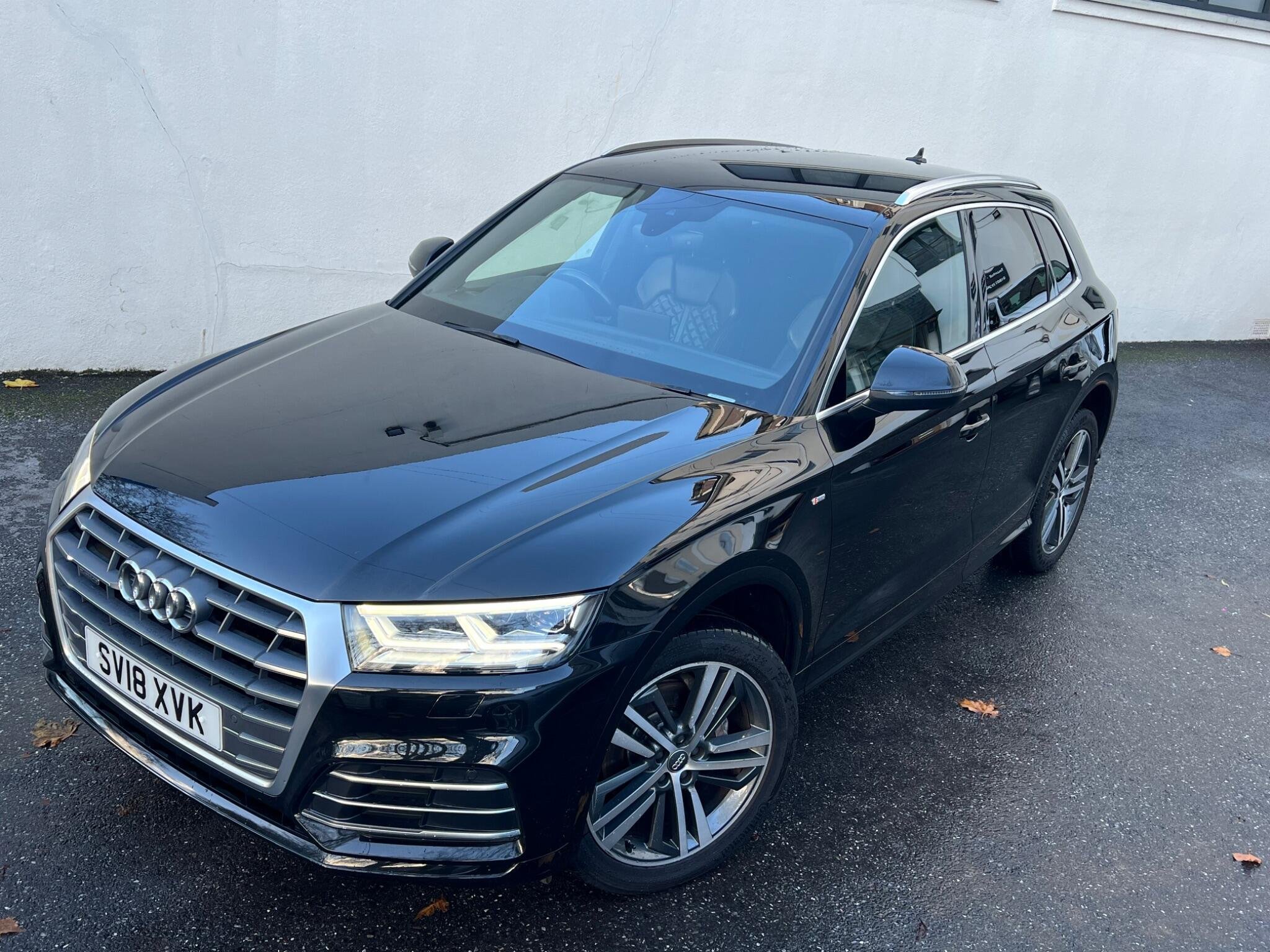 This 2018 Audi Q5 TDI S line boasts exceptionally low mileage for its age, having covered just 62,000 miles. This premium SUV features a powerful yet efficient 2.0 litre Euro 6 diesel engine paired with Audi's renowned four wheel drive system, ensuring confident handling in all conditions. The S line trim level enhances its sporty appeal, and you'll appreciate the comfort of heated front seats, 20" Diamond Finshed S Line Alloys, Full black leather S Leather Interior With White Stitching, Heated Seats, the convenience of a light and rain sensor that automatically activates the headlights, and the sophisticated LED headlights with their distinctive Q signature design, complemented by LED rear lights and dynamic rear indicators. Stay connected on the go with the integrated Bluetooth interface and enjoy a perfectly regulated cabin temperature thanks to the deluxe 3 zone climate control.