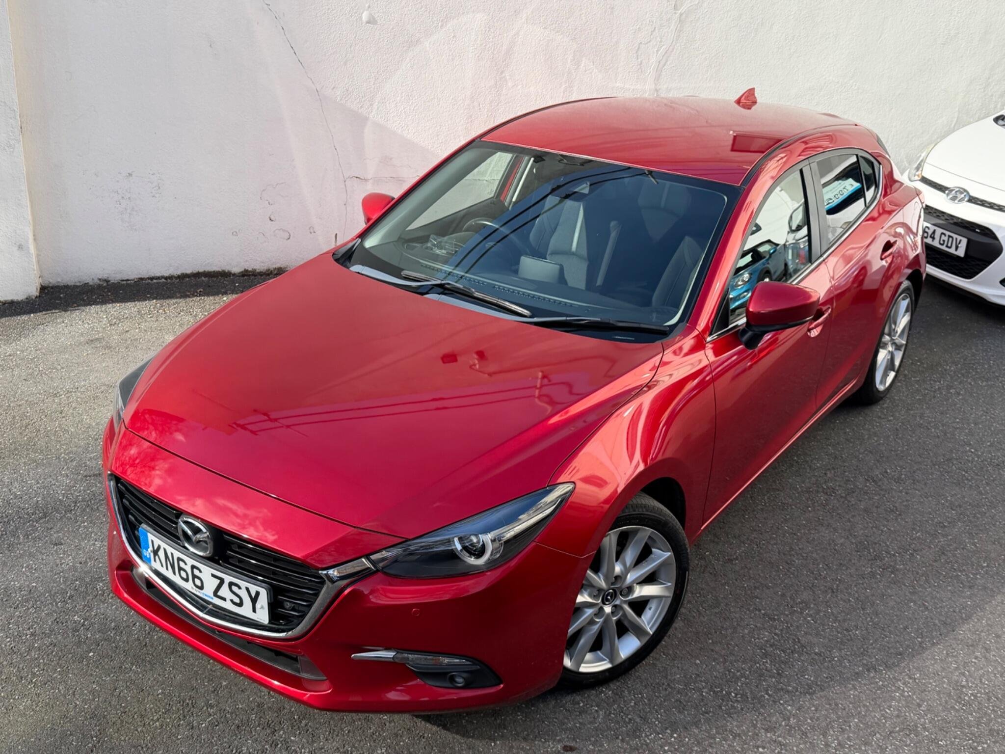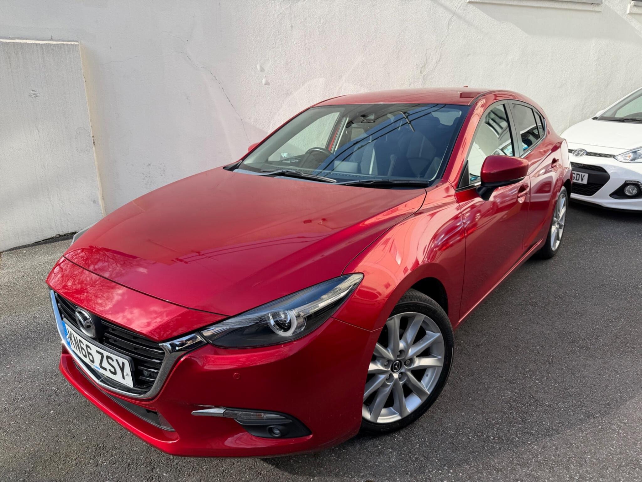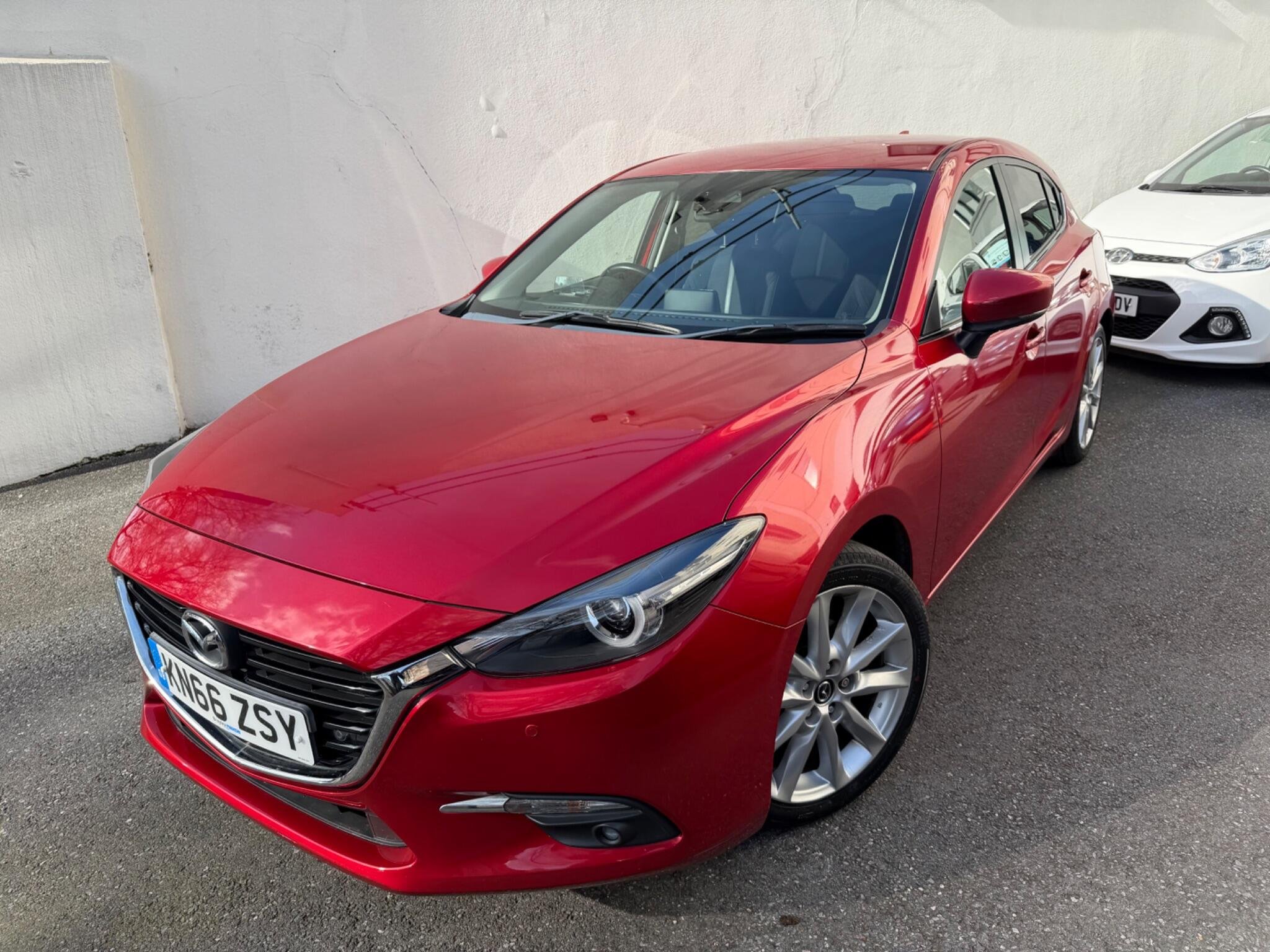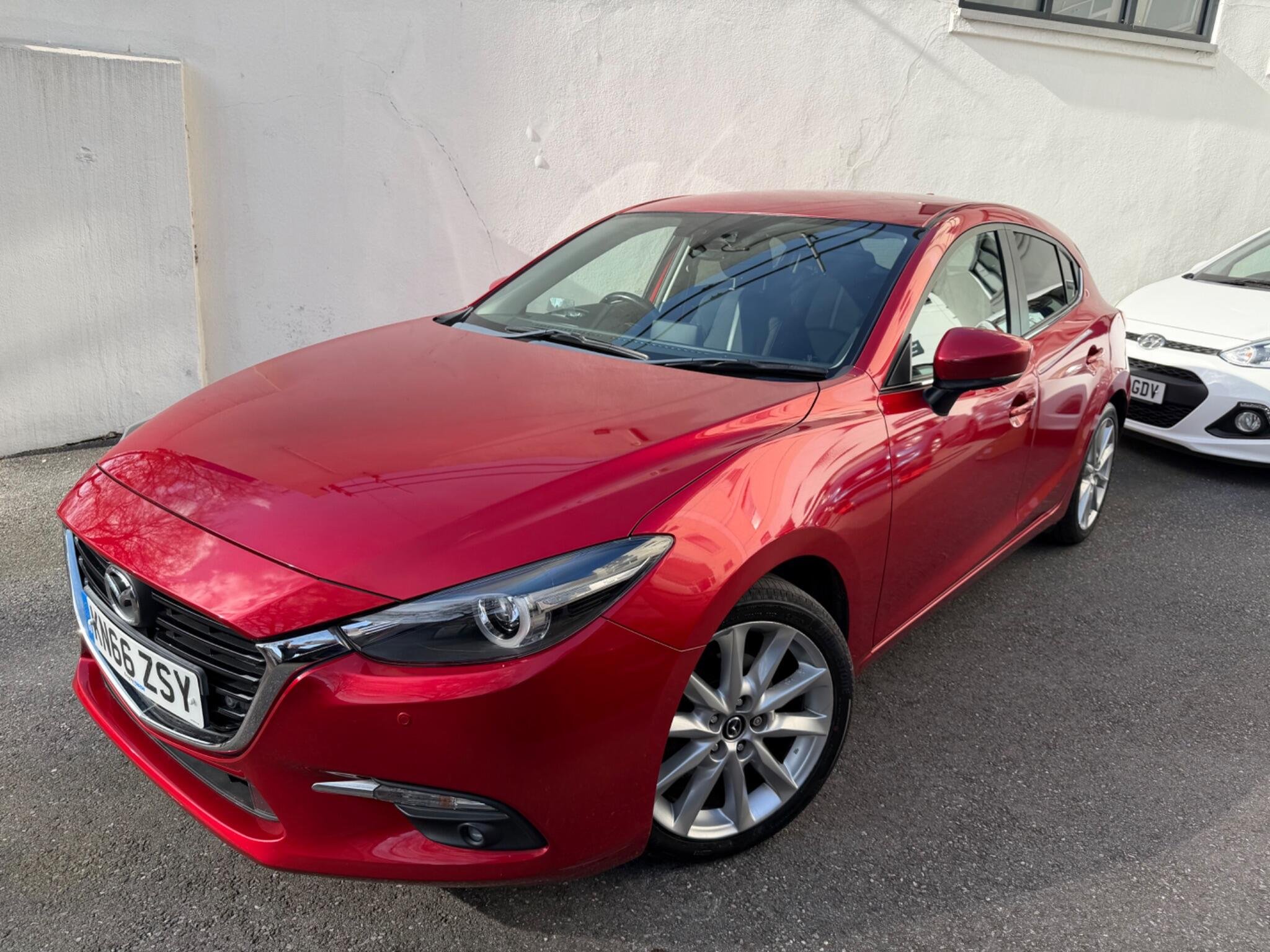 This 2016 Top Spec Mazda 3 SKYACTIV G Sport Nav boasts a clear vehicle history, offering you peace of mind. This well presented example features a 2.0 litre petrol engine and the desirable Sport Nav trim. You'll appreciate the convenience of Sat Nav, Rear Parking Camera, Head Up Dispaly, dusk sensing automatic headlights, smart keyless entry, and heated front seats for those cooler mornings. The dual zone climate control ensures comfort for all occupants, Front And Rear Parking Scensors while the combined Bluetooth system allows for seamless phone and audio streaming + Much More.
