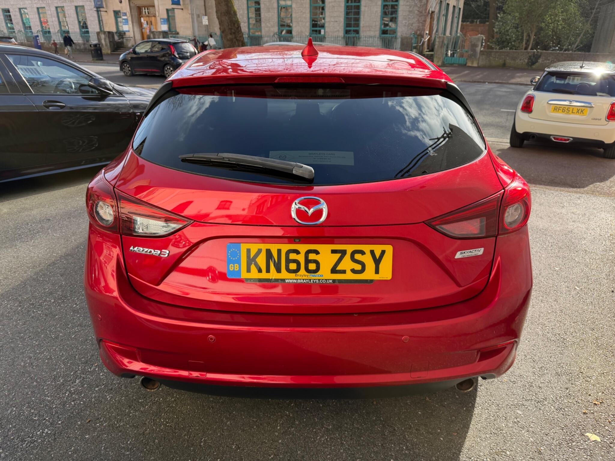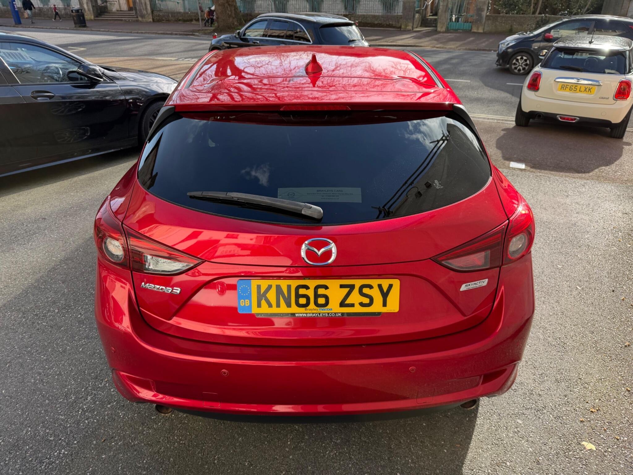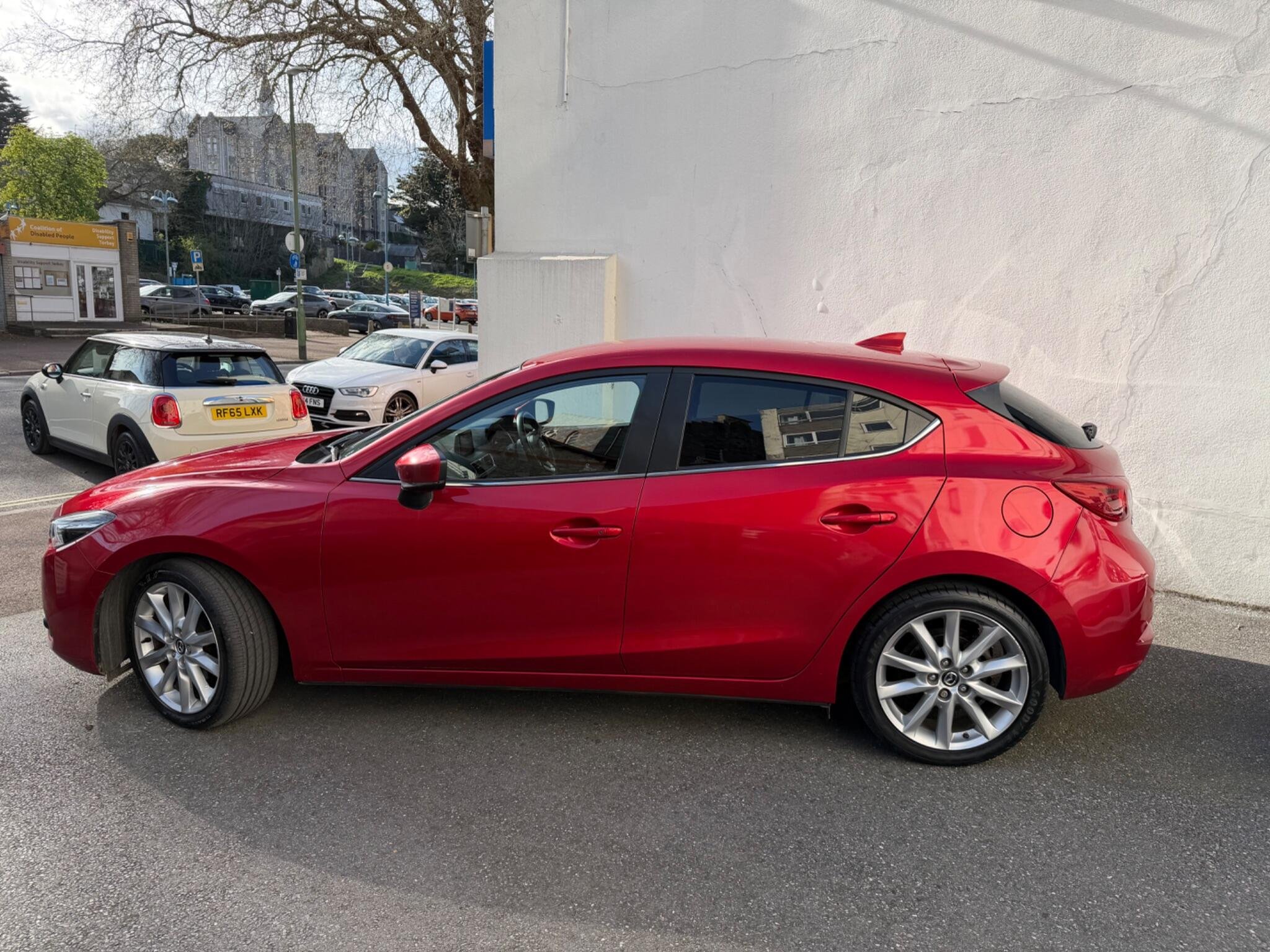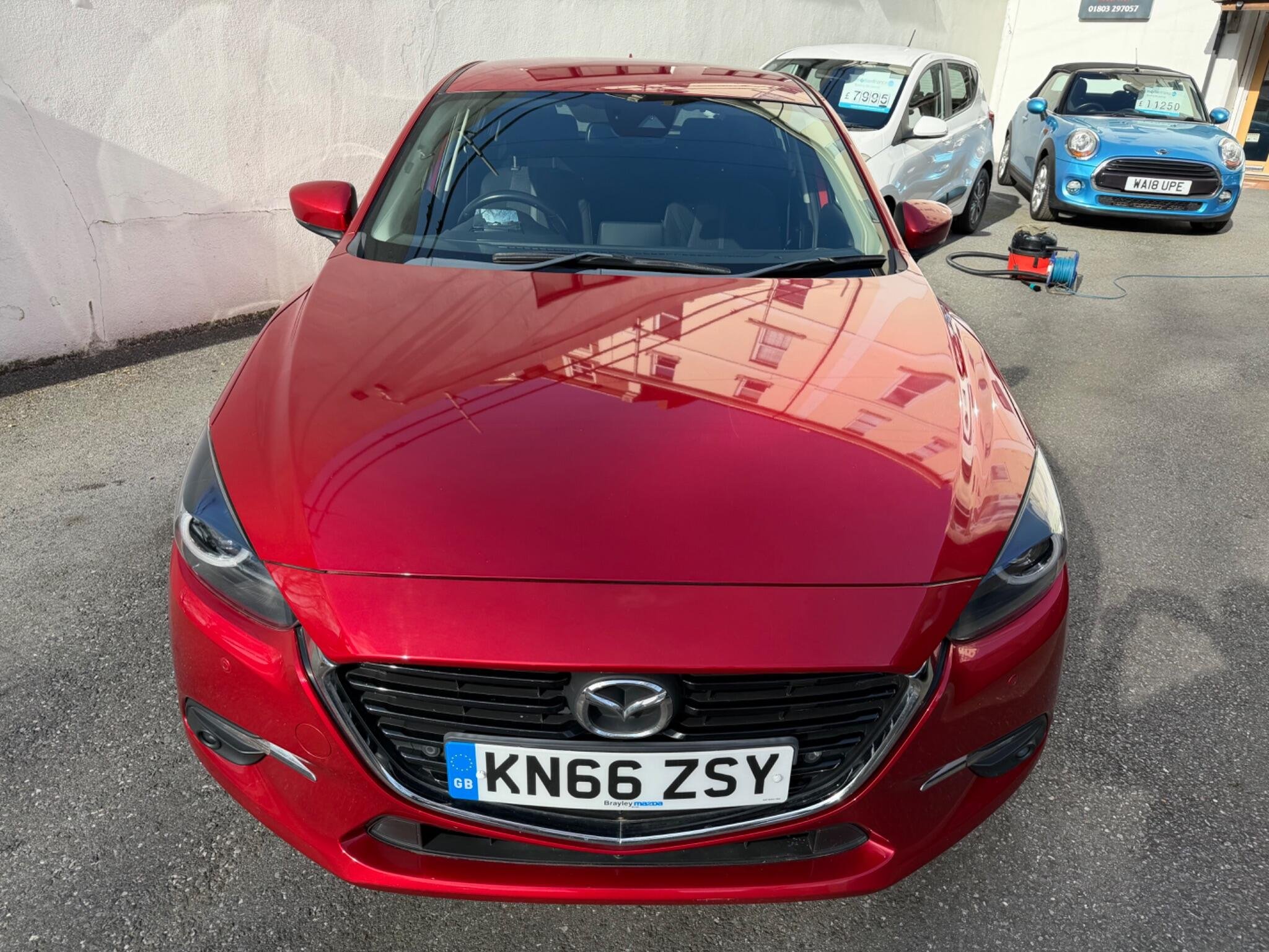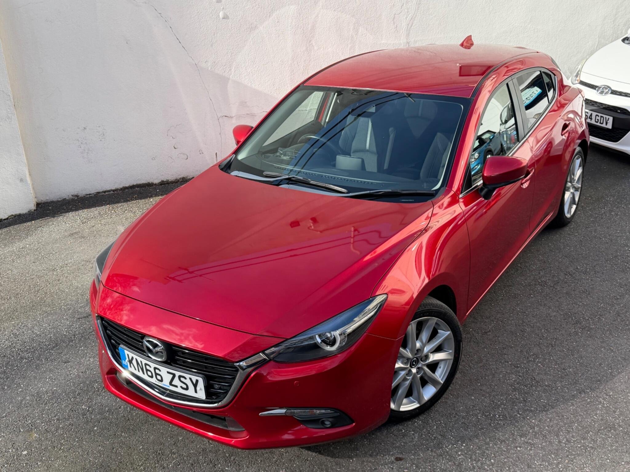 This 2016 Top Spec Mazda 3 SKYACTIV G Sport Nav boasts a clear vehicle history, offering you peace of mind. This well presented example features a 2.0 litre petrol engine and the desirable Sport Nav trim. You'll appreciate the convenience of Sat Nav, Rear Parking Camera, Head Up Dispaly, dusk sensing automatic headlights, smart keyless entry, and heated front seats for those cooler mornings. The dual zone climate control ensures comfort for all occupants, Front And Rear Parking Scensors while the combined Bluetooth system allows for seamless phone and audio streaming + Much More.