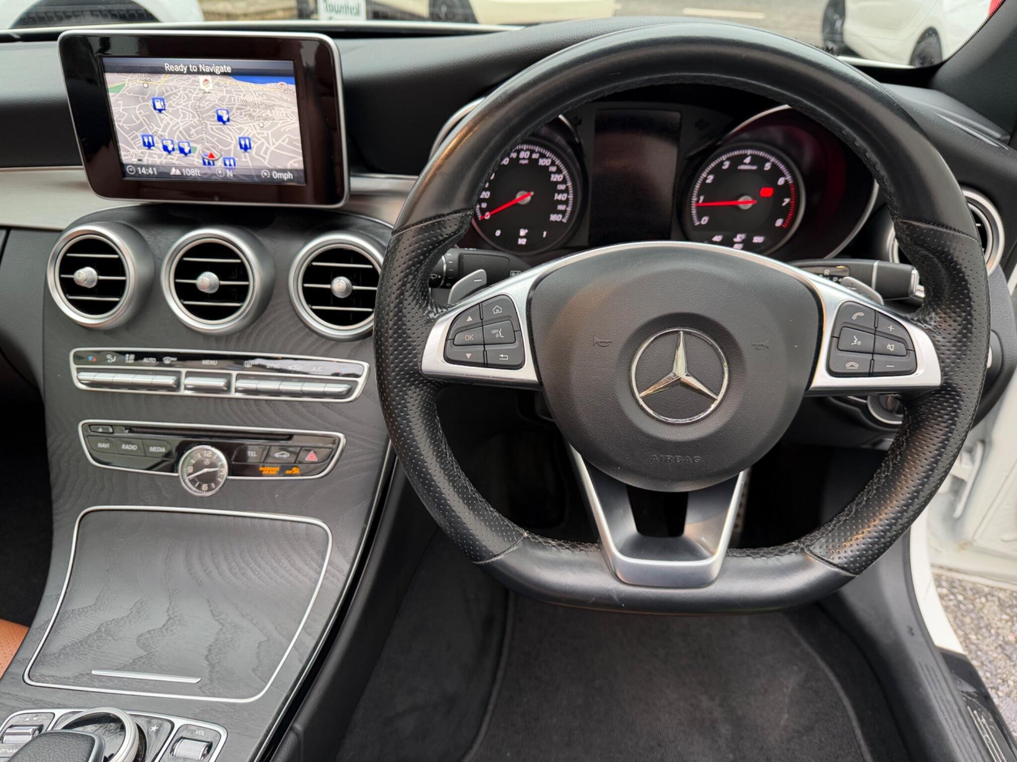 This 2018 Mercedes Benz C Class C200 AMG Line boasts exceptionally low mileage for its age, having covered just 45,000 miles. Finished in the stylish AMG Line trim, this 2.0 litre petrol model is Euro 6 compliant and features a luxurious Saddle Brown leather interior. Comfort is further enhanced by heated front electric memory seats, Fantastic Air Scarf and THERMATIC two zone automatic climate control, ensuring a pleasant driving experience in any weather. Practicality is also a key consideration, with a reversing camera to aid parking and keyless entry for effortless access + Much More.