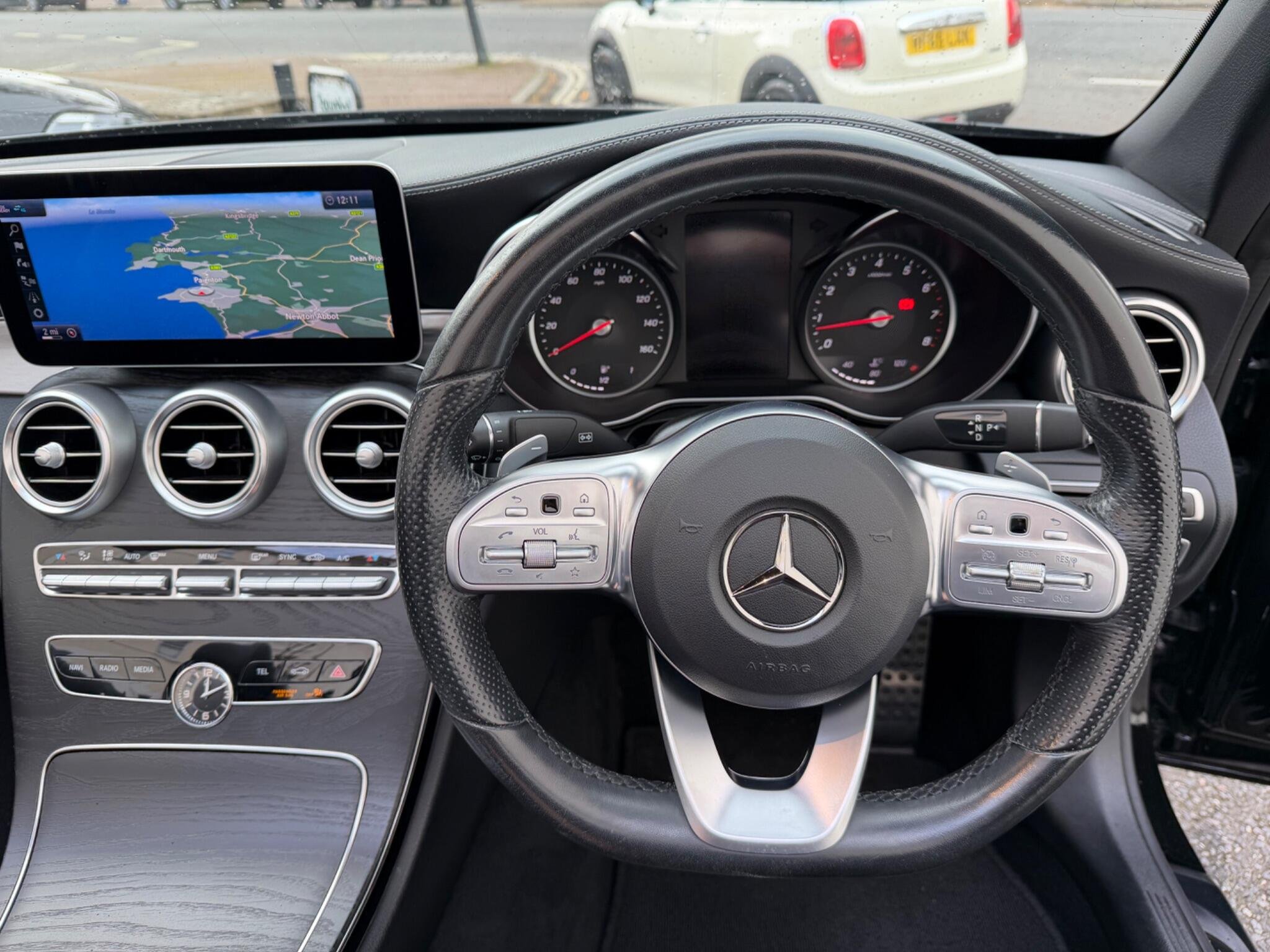 Boasting exceptionally low mileage for its age, this 2019 Mercedes Benz C Class C300 AMG Line presents a superb ownership proposition. Finished in the desirable AMG Line trim, this petrol model features a potent 2.0L engine and meets Euro 6 emissions standards. It has been cherished by only two owners and comes equipped with striking 19in AMG 5-Twin-Spoke alloy wheels finished in high gloss black. Sat Nav, Heated Seats, Heated Air Scarf, Electric Seats, Inside, you will find comfort and convenience with THERMATIC automatic climate control for two zones and Parking is made easier with a helpful reversing camera, and the Audio 20 CD system with Bluetooth connectivity ensures you stay entertained and connected on every journey.